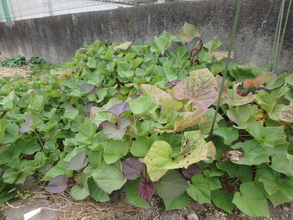 夏野菜(ピーマン・なす)の隣ですくすくと育っていたさつまいも🍠