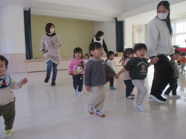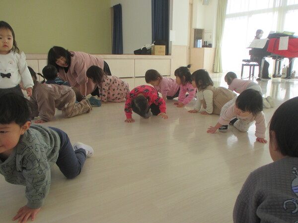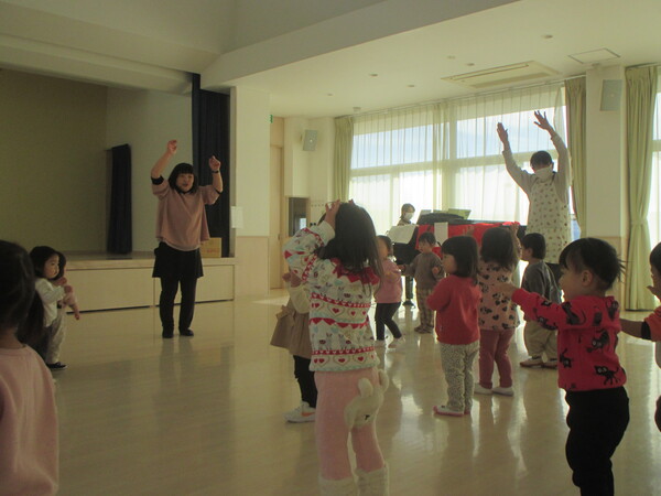2月 ひよこ・はな・つくし組のお友だちがリトミック教室に参加しました。